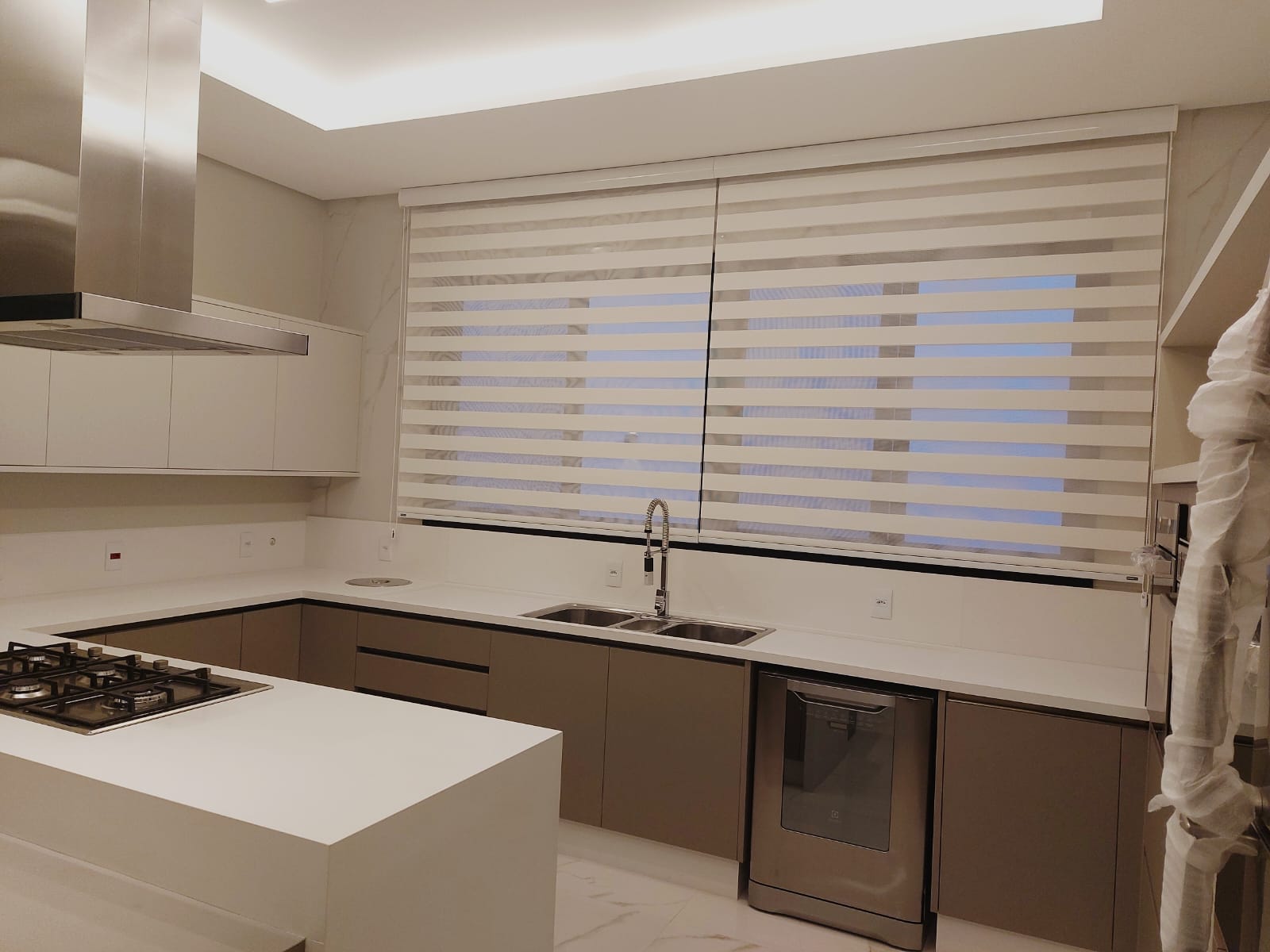 A Double vision é uma cortina que vem conquistando os profissionais da arquitetura e design. Este modelo apresenta como diferencial o equilíbrio da luminosidade com muita sofisticação. Sua superfície é composta de linhas horizontais que alternam frente e verso com telas transparentes e tecidos translúcidos que preenchem a janela de forma elegante e alinhada, uma verdadeira obra de arte na sua janela. O movimento inverso de suas superfícies – enquanto uma sobe, a outra desce – fazem do movimento da Double vision uma inesquecível experiência. Elegância, inovação e muito bom gosto, num produto fantástico.